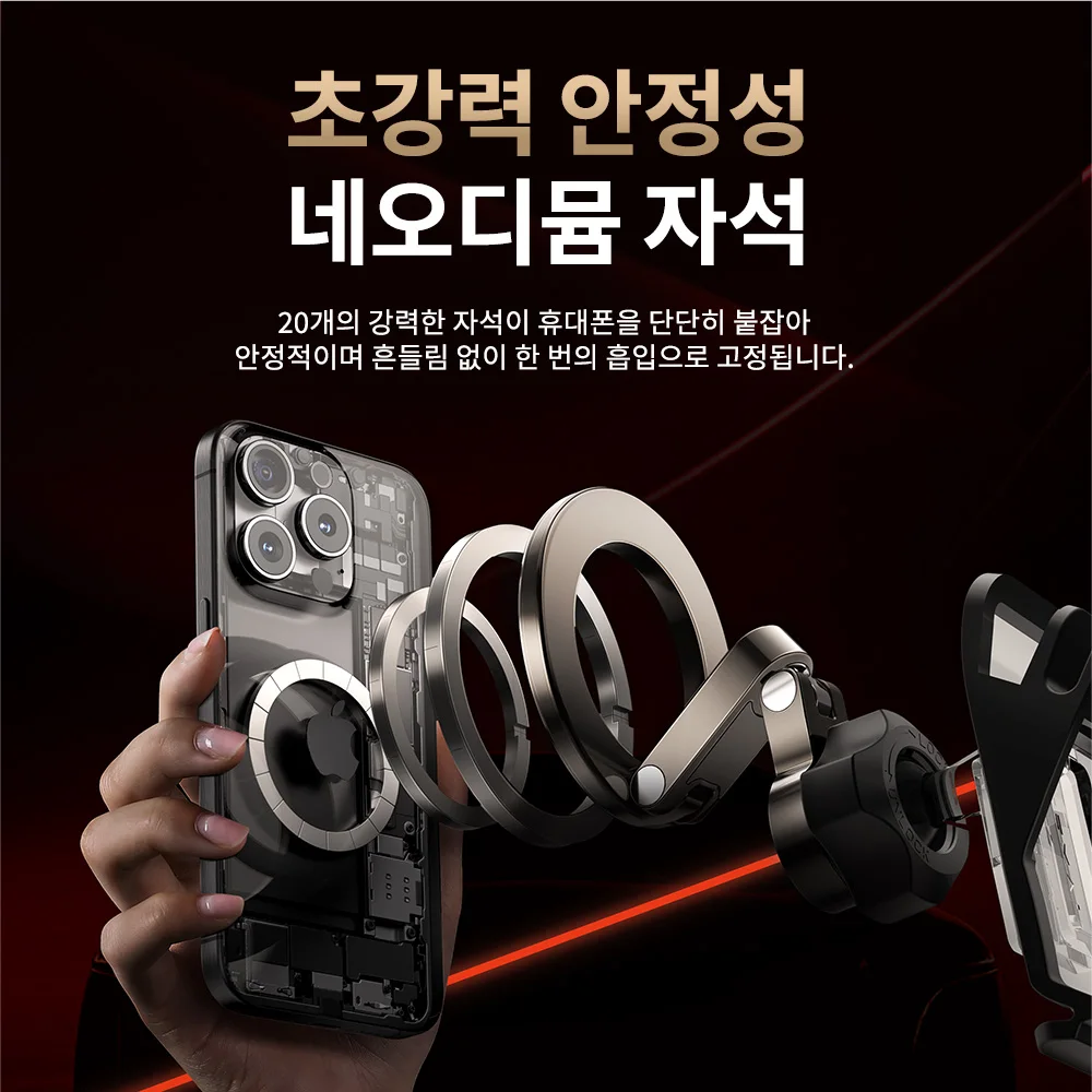 - ② 네오디뮴 마그넷 – 20개 자석 배열로 강력 흡착