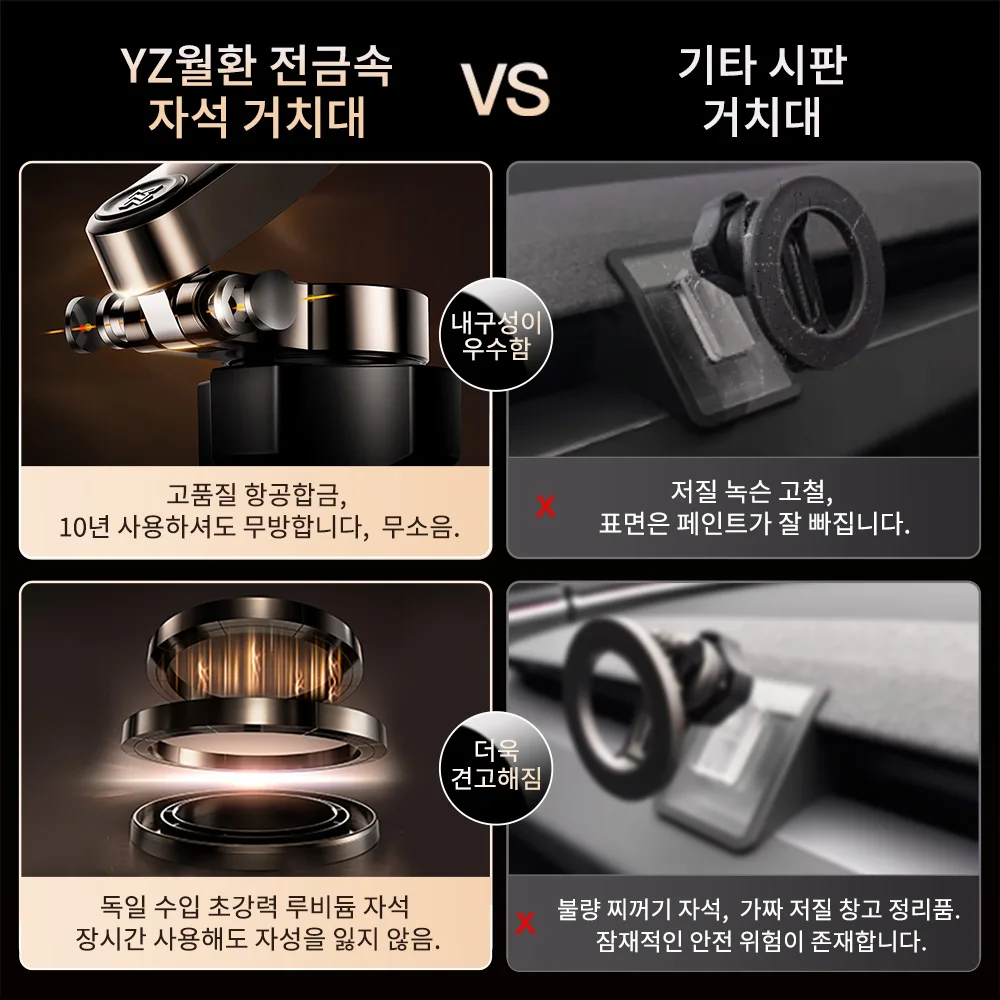 | 거치 구조 | 전금속 월환 자석 헤드 + 힌지 버팀목 |