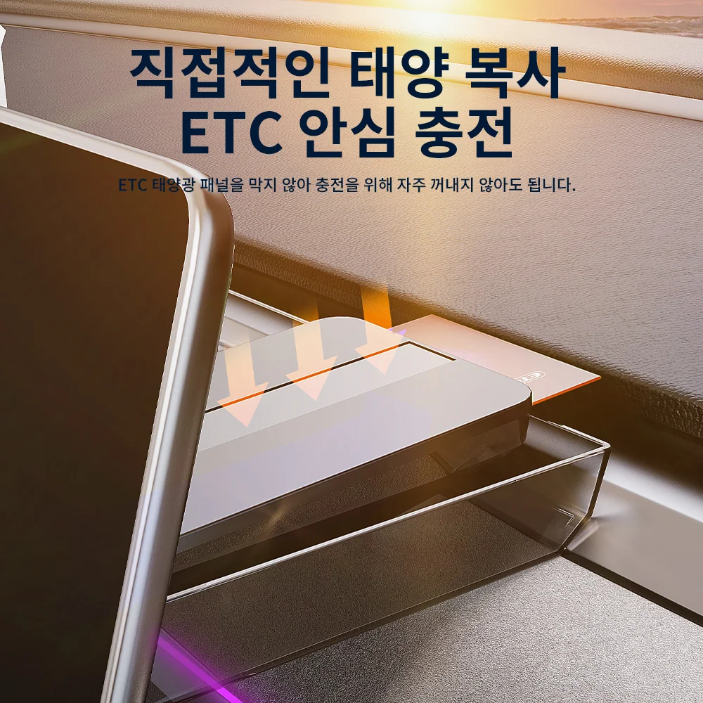 ETC 장치를 넣을 경우 태양광 패널 방향이 가려지지 않도록 배치하세요.