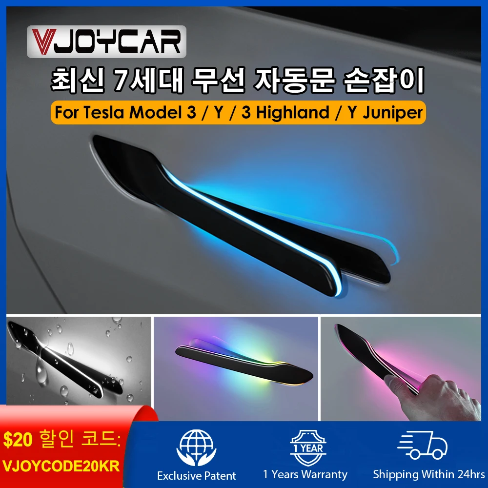 VJOYCAR 7세대 무선 자동 도어 핸들은 컬러풀 LED 웰컴 라이트와